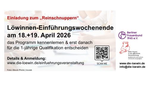 Sie gehören zu den Frauen, die mehr Selbstverantwortung übernehmen wollen? Sie streben eine Führungsposition an oder wollen Ihre Führungsrolle überdenken? Sie wollen Ihre Resilienz in Veränderungsprozessen fördern? Das Weiterbildungs-Programm „Die Löwin“ ist für Frauen, die ihre Selbstwirksamkeit stärker entfalten, mit ihren Kompetenzen sichtbarer werden und sich mit Berliner Frauen vernetzen wollen.