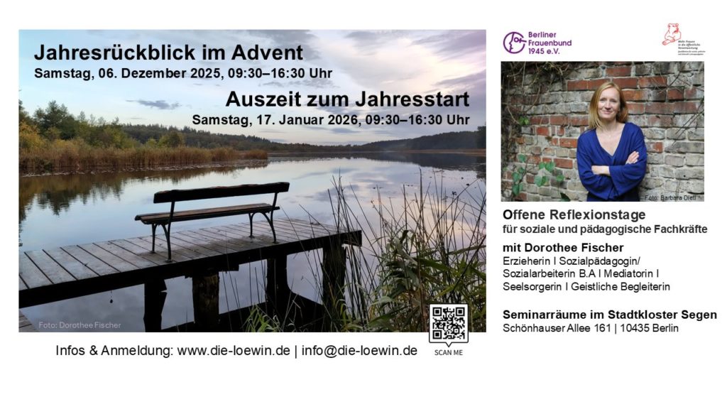 Offene Reflexionstage für soziale und pädagogische Fachkräfte: „Jahresrückblick im Advent“ (Sa 06.12.2025) und „Auszeit zum Jahresstart“ (Sa 17.01.2026)