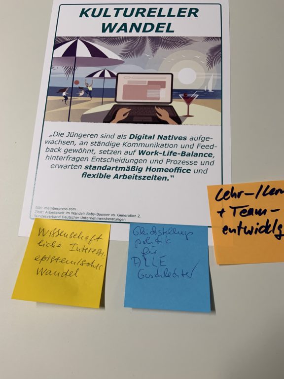 Die Themen des Fachaustauschs umfassten: demografischer Wandel, Globalisierung, digitale Transformation, sozial-ökologischer Wandel, politischer Wandel, demographischer Wandel … und was steckt dahinter? Polykrisen / Multikrisen – was bedeutet die zunehmende Gleichzeitigkeit in der Praxis? Was können/ müssen Organisationen tun, um insb. Frauen in Krisensituationen und Veränderungsprozessen zu unterstützen? Welches sind zentrale Zukunftskompetenzen?